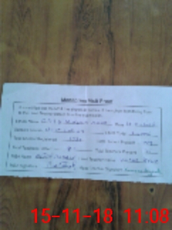 | Monitoring Date: 15-11-2018 | Start Time: 15-11-2018 08:46 AM | End Time: 15-11-2018 11:10 AM | Name of MEA: Al**** Hu**** BN**** | |