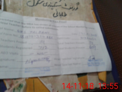 | EMIS Code: 31320050 | Name of School: GHS TALBANI | |||
