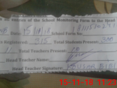 | Attendance Register | Head Teacher | MEA with School | Visit Proof |