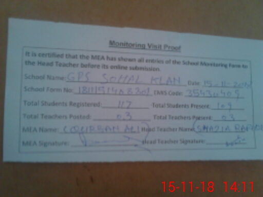 | EMIS Code: 35430409 | Name of School: GPS SOHAIL KALAN | |||