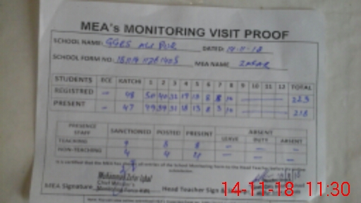 | Certified that this School was Inspected by the Undersigned MEA/DMO Today and the Information Stated Above is as Per Record. | |||||