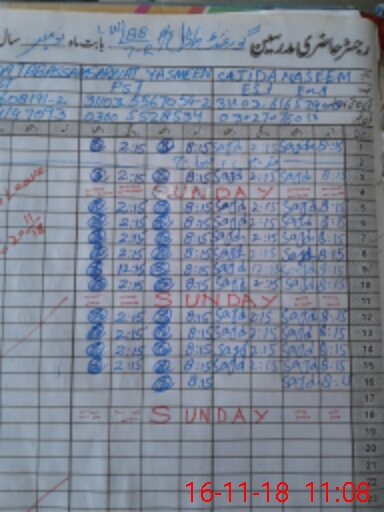 | CNIC | Full Name | Designation | R/C | Absence During Last Calender Month |