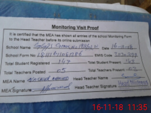 | Attendance Register | Head Teacher | MEA with School | Visit Proof |