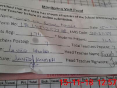 | Attendance Register | Head Teacher | MEA with School | Visit Proof |
