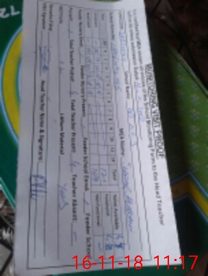 | Attendance Register | Head Teacher | MEA with School | Visit Proof |
