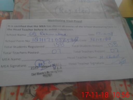 | Certified that this School was Inspected by the Undersigned MEA/DMO Today and the Information Stated Above is as Per Record. | |||||