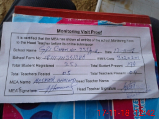 | Attendance Register | Head Teacher | MEA with School | Visit Proof |