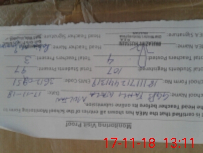 | Attendance Register | Head Teacher | MEA with School | Visit Proof |