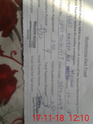 | Certified that this School was Inspected by the Undersigned MEA/DMO Today and the Information Stated Above is as Per Record. | |||||