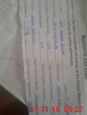 | Certified that this School was Inspected by the Undersigned MEA/DMO Today and the Information Stated Above is as Per Record. | |||||