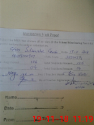 | School Visited by School Health & Nutrition Supervisor (No. of Visits) | 1 | Name1: | Anis Fatma | Name2: | O |