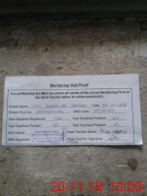 | Attendance Register | Head Teacher | MEA with School | Visit Proof |
