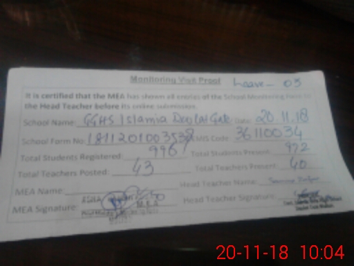 | EMIS Code: 36110034 | Name of School: GGHS ISLAMIA DOULAT GATE MULTAN | |||