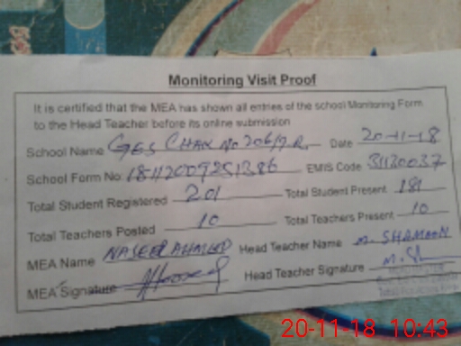 | EMIS Code: 31130037 | Name of School: GES CHAK NO. 206/9-R | |||