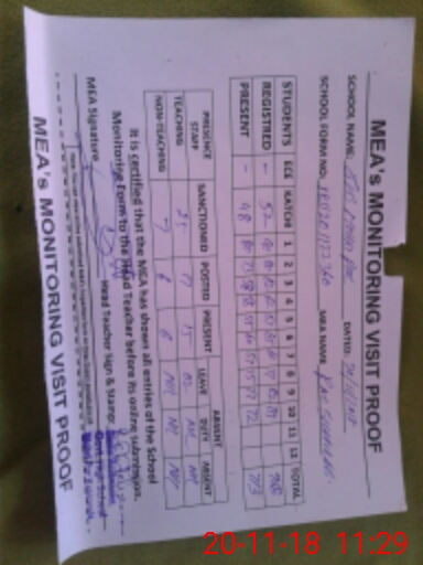| Attendance Register | Head Teacher | MEA with School | Visit Proof |