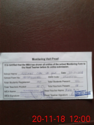 | Attendance Register | Head Teacher | MEA with School | Visit Proof |