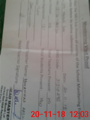 | Attendance Register | Head Teacher | MEA with School | Visit Proof |