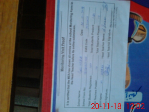| Attendance Register | Head Teacher | MEA with School | Visit Proof |