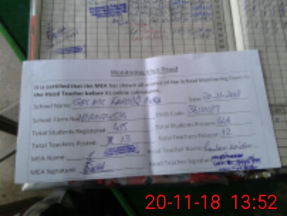 | Certified that this School was Inspected by the Undersigned MEA/DMO Today and the Information Stated Above is as Per Record. | |||||
