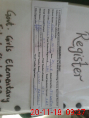 | No. of Students Present - Female | 6 | 0 | 24 | 42 | 30 | 23 | 27 | 21 | 22 | 16 | 18 | 229 | ||||