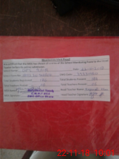 | EMIS Code: 39330440 | Name of School: GPS CHAK NO. 9/1-R | |||