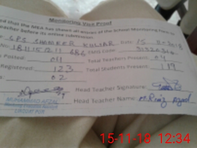 | Certified that this School was Inspected by the Undersigned MEA/DMO Today and the Information Stated Above is as Per Record. | |||||