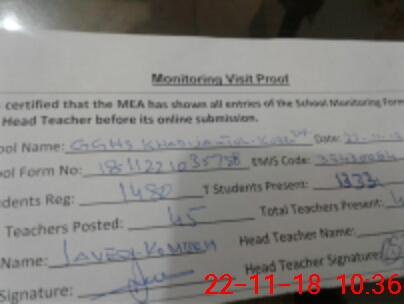 | Certified that this School was Inspected by the Undersigned MEA/DMO Today and the Information Stated Above is as Per Record. | |||||