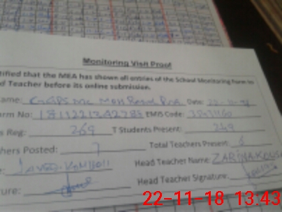| Attendance Register | Head Teacher | MEA with School | Visit Proof |