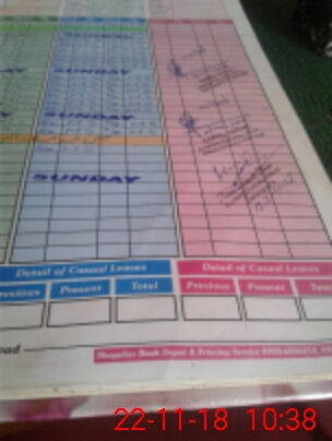 | CNIC | Full Name | Designation | R/C | Absence During Last Calender Month |