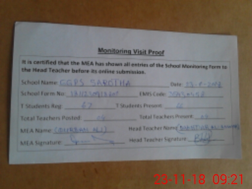 | EMIS Code: 35430458 | Name of School: GGPS MODEL SAROTHA | |||
