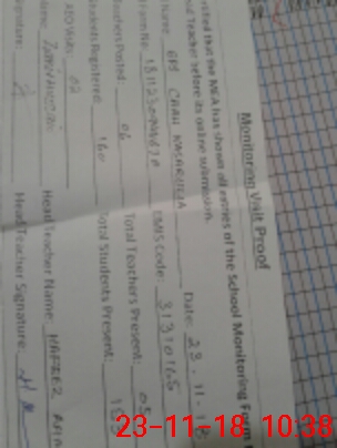 | Monitoring Date: 23-11-2018 | Start Time: 23-11-2018 09:44 AM | End Time: 23-11-2018 10:42 AM | Name of MEA: Za**** Hu**** | |