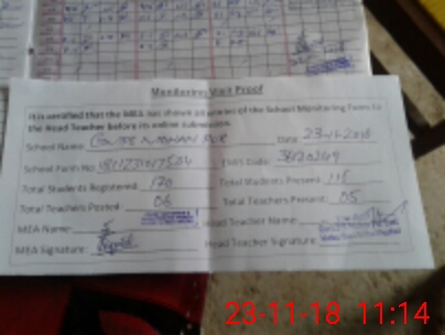 | Attendance Register | Head Teacher | MEA with School | Visit Proof |