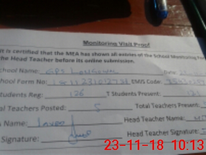 | Attendance Register | Head Teacher | MEA with School | Visit Proof |