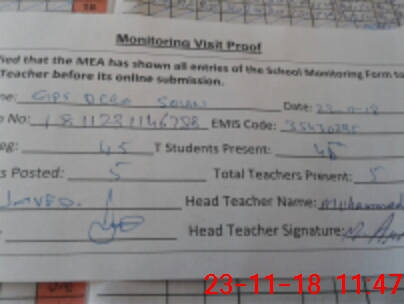 | Attendance Register | Head Teacher | MEA with School | Visit Proof |