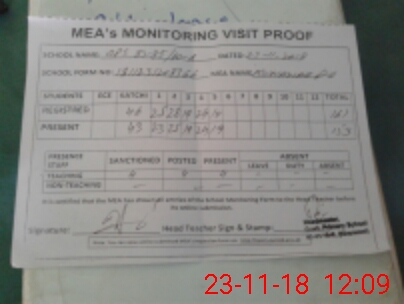 | Attendance Register | Head Teacher | MEA with School | Visit Proof |