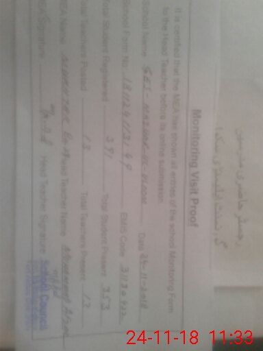 | Attendance Register | Head Teacher | MEA with School | Visit Proof |