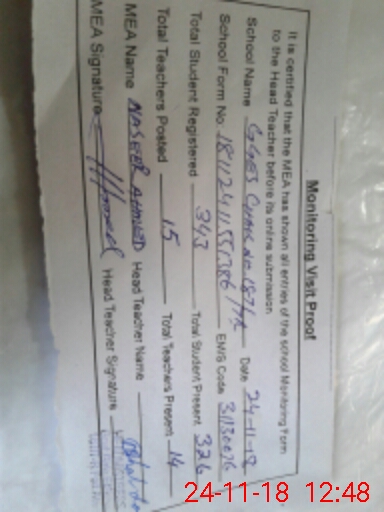 | Certified that this School was Inspected by the Undersigned MEA/DMO Today and the Information Stated Above is as Per Record. | |||||