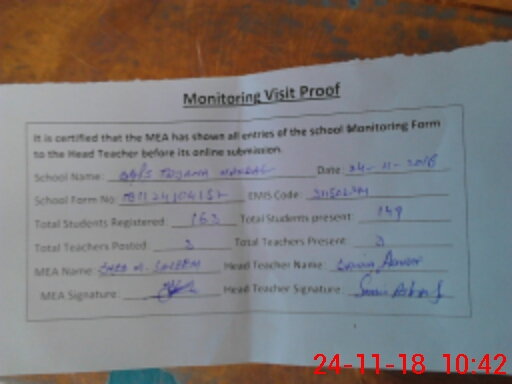 | Certified that this School was Inspected by the Undersigned MEA/DMO Today and the Information Stated Above is as Per Record. | |||||