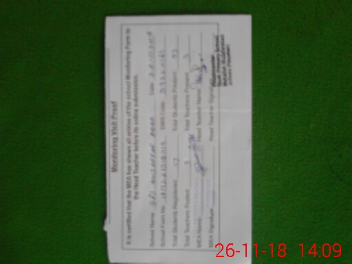 | Attendance Register | Head Teacher | MEA with School | Visit Proof |