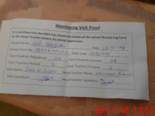 | Certified that this School was Inspected by the Undersigned MEA/DMO Today and the Information Stated Above is as Per Record. | |||||