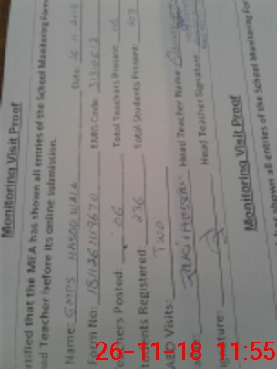 | Certified that this School was Inspected by the Undersigned MEA/DMO Today and the Information Stated Above is as Per Record. | |||||