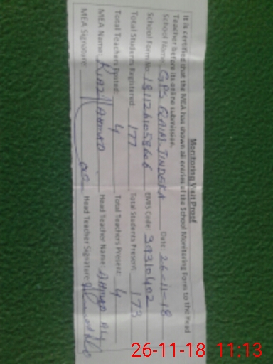 | Attendance Register | Head Teacher | MEA with School | Visit Proof |