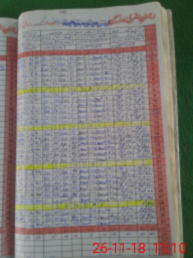 | CNIC | Full Name | Designation | R/C | Absence During Last Calender Month |