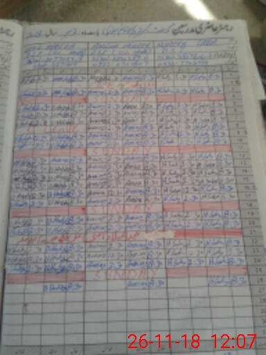 | CNIC | Full Name | Designation | R/C | Absence During Last Calender Month |