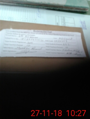 | Monitoring Date: 27-11-2018 | Start Time: 27-11-2018 09:47 AM | End Time: 27-11-2018 10:29 AM | Name of MEA: MU**** AH**** (R**** | |