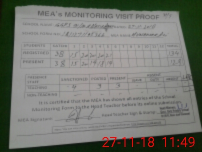 | Attendance Register | Head Teacher | MEA with School | Visit Proof |