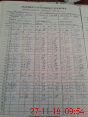 | CNIC | Full Name | Designation | R/C | Absence During Last Calender Month |
