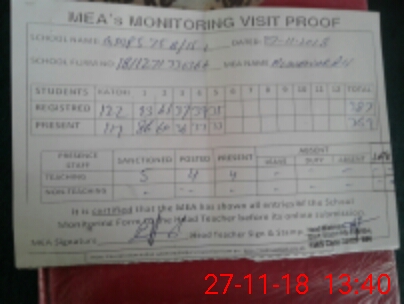 | Attendance Register | Head Teacher | MEA with School | Visit Proof |