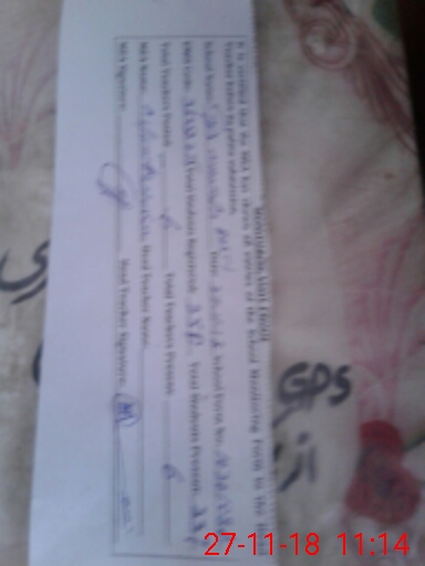 | Name: SA**** HU**** Designation: (School Headmaster's/Headmistress's) PST Phone/Cell Number: 03**** |