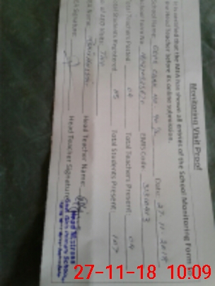 | Monitoring Date: 27-11-2018 | Start Time: 27-11-2018 09:25 AM | End Time: 27-11-2018 10:14 AM | Name of MEA: Za**** Hu**** | |